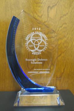 Strategic Defense Solutions (SDS) has been awarded the 2012 Supplier Excellence Award from Northrop Grumman Information Systems. This prestigious award is presented each year by Northrop Grumman to identify their top suppliers. This year 26 suppliers were selected from a field of more than 6000. The award is based on exceptional performance in the areas of technical performance, mission assurance, financial management, and program management.